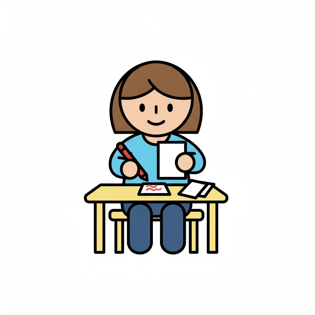 Minimalistische Vektorillustration im flächigen Icon-Stil. Sehr einfache, reduzierte Formen mit klaren, dicken Konturen und wenigen Details. Flächige Farben ohne Verläufe oder Texturen, ruhige Farbpalette, klare Silhouette und gut lesbare, freundliche Figur. Moderne, kindgerechte Lernillustration im Stil einfacher Piktogramme, sauberer Hintergrund und übersichtliche Komposition. Hoher Kontrast, isoliert auf weißem Hintergrund. WICHTIG: KEIN TEXT im Bild. Hintergrund: Rein weiß.