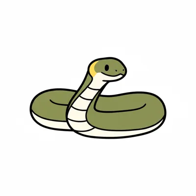 Eine cartoonartige grüne Schlange mit gelben akzentuierten Merkmalen.
