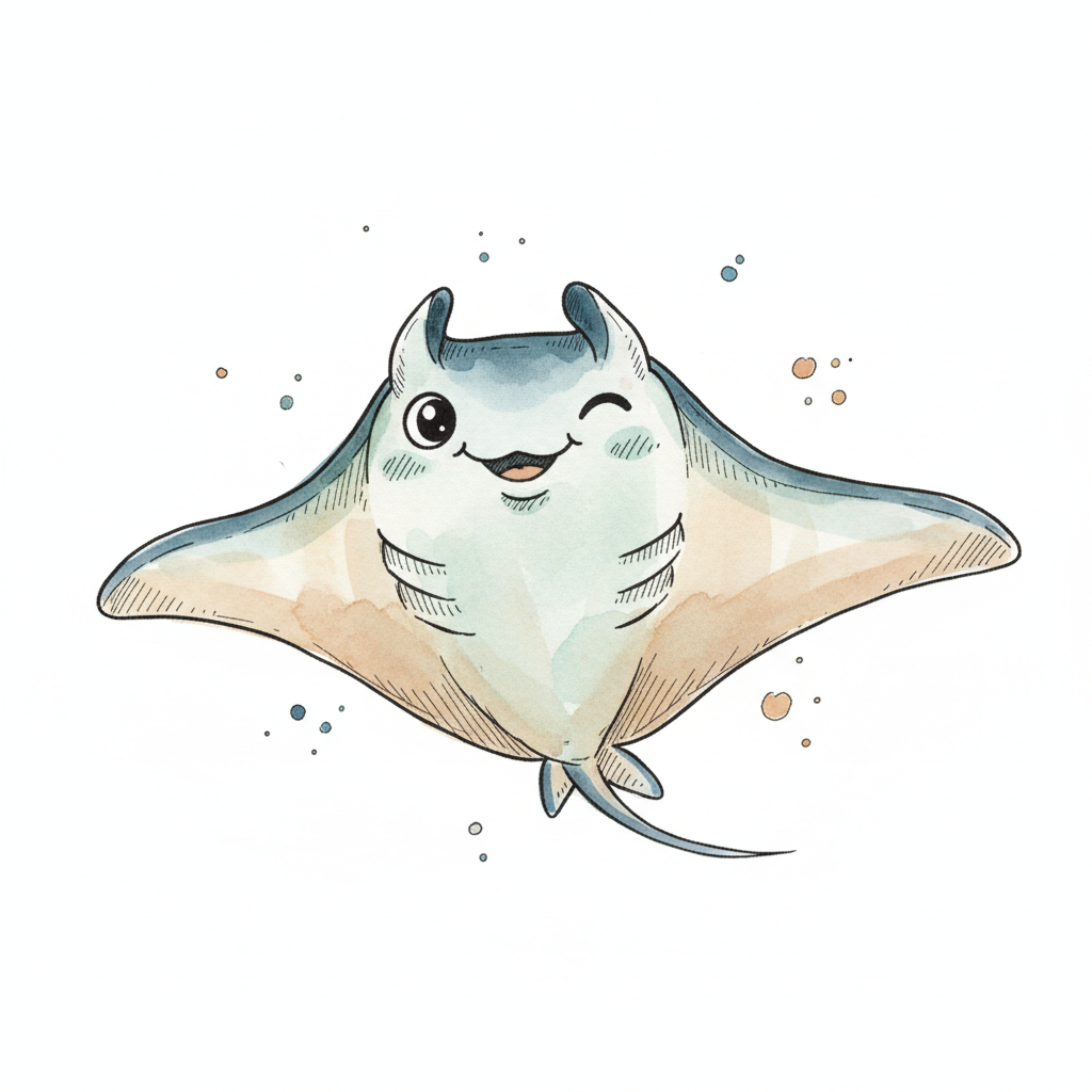 Eine stilisierte Manta-Ray schwimmt elegant durch das Wasser.