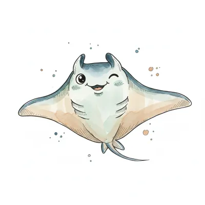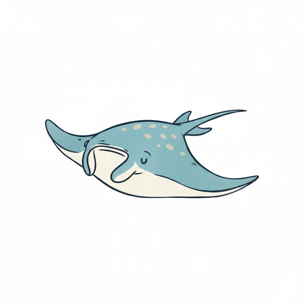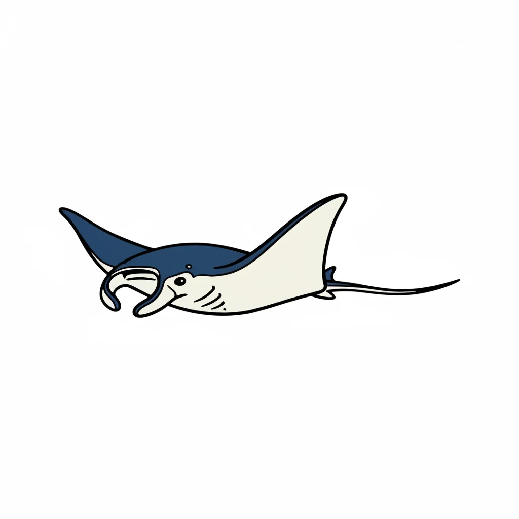 Eine gezeichnete Manta-Raute schwimmt elegant im Wasser.