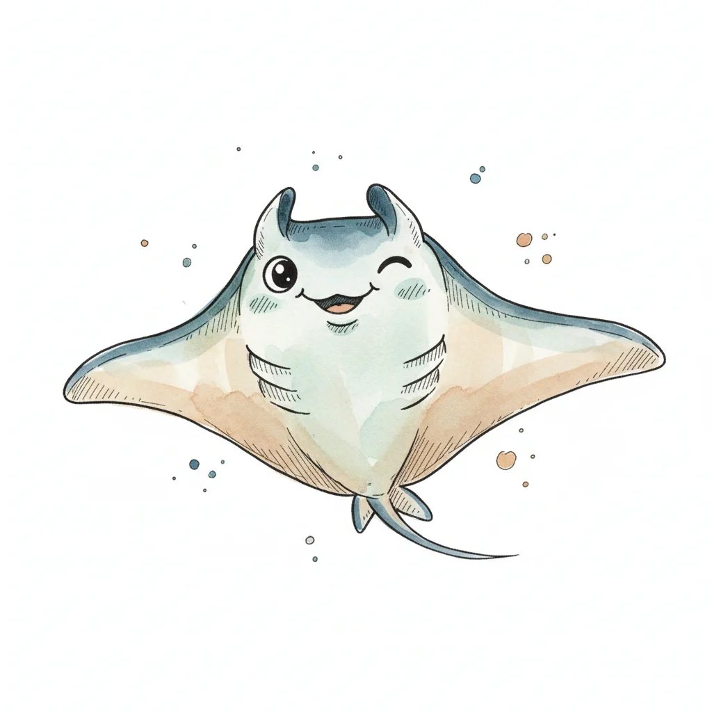 Ein stilisierter, cartoonhafter Rochen mit breiten Flügeln.