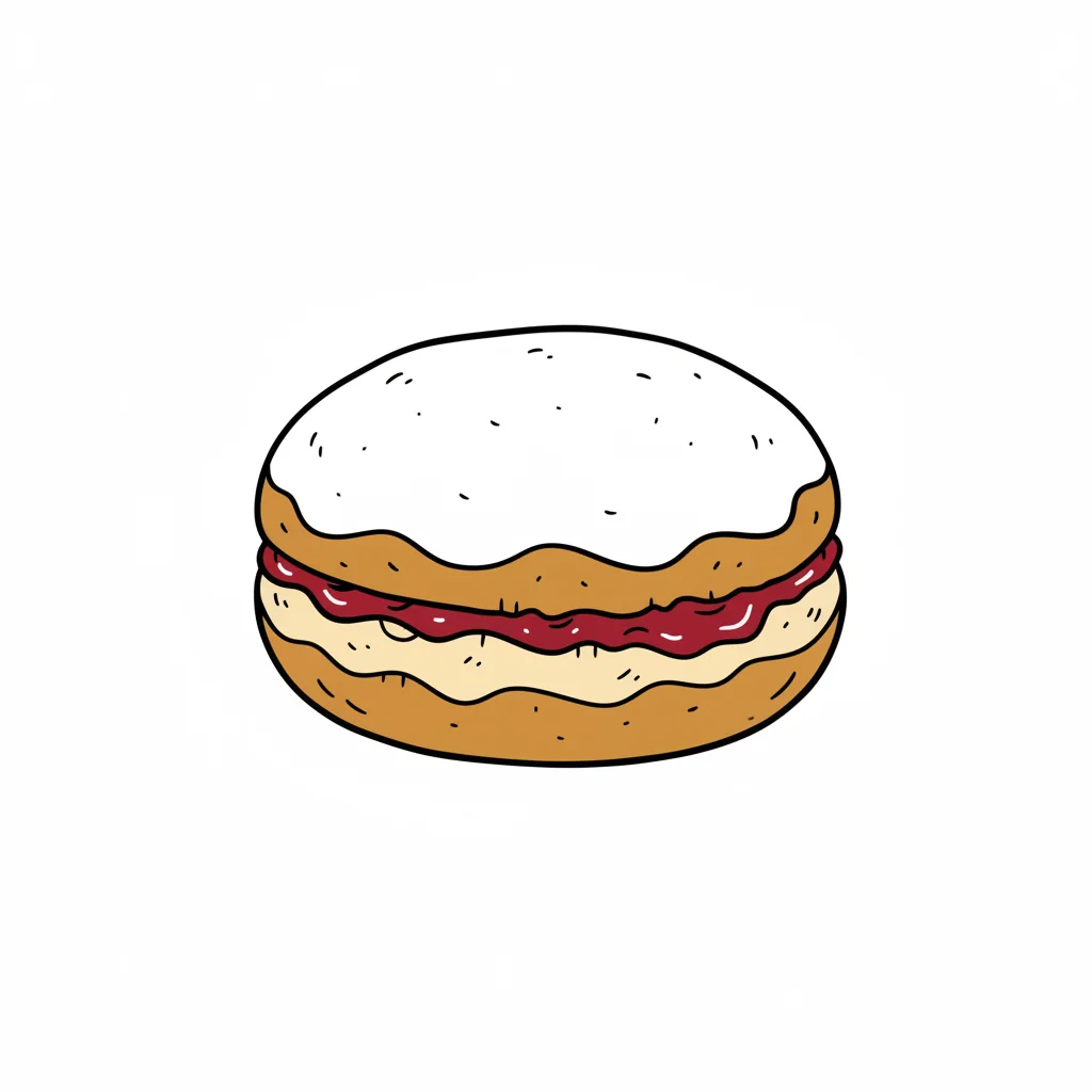 Ein runder Keks mit einer Füllung aus Creme und Marmelade.