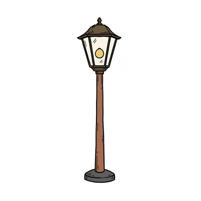 Stilisierte Straßenlaterne mit braunem Mast und leuchtendem Kopf, isoliert auf weißem Hintergrund.