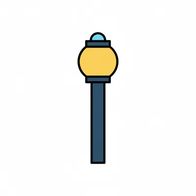 Stilisierte Straßenlaterne mit gelbem, rundem Leuchtkopf und blauem Mast auf weißem Hintergrund.