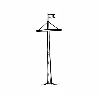 Stilisierter blauer Pfahl mit Querbalken und orangefarbener Flagge, isoliert auf Weiß.
