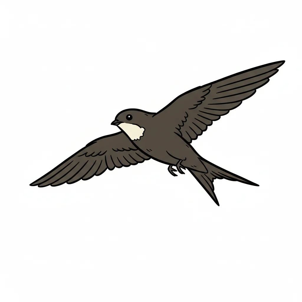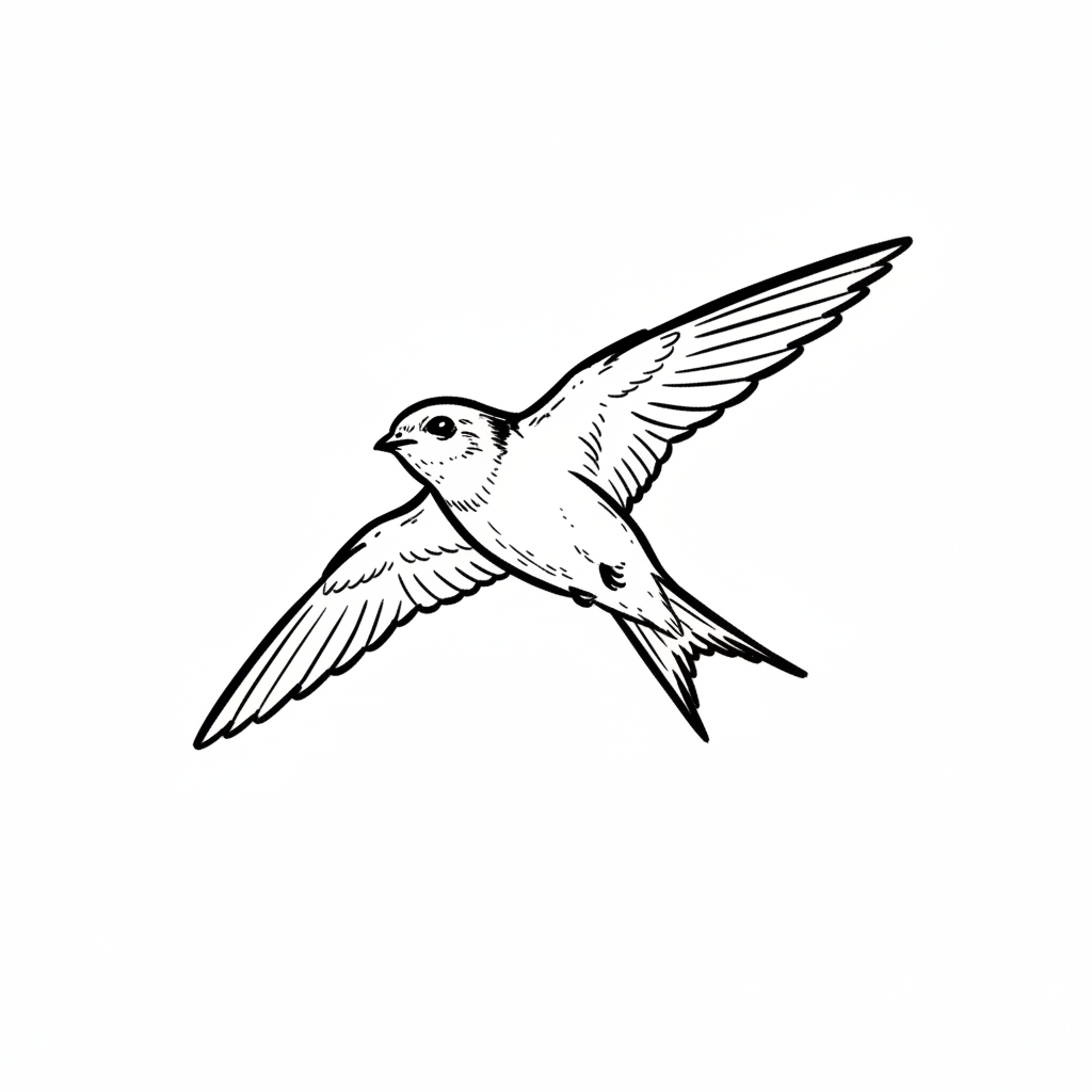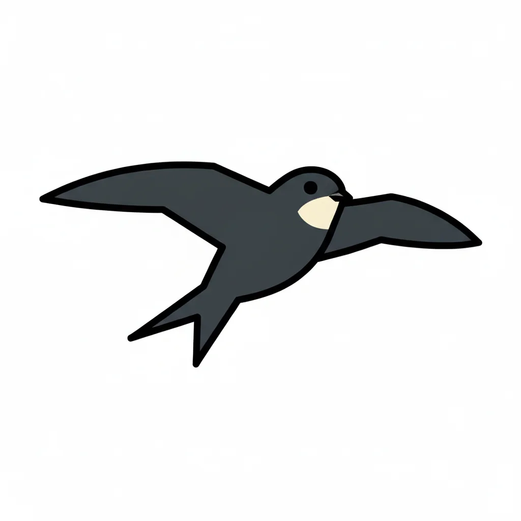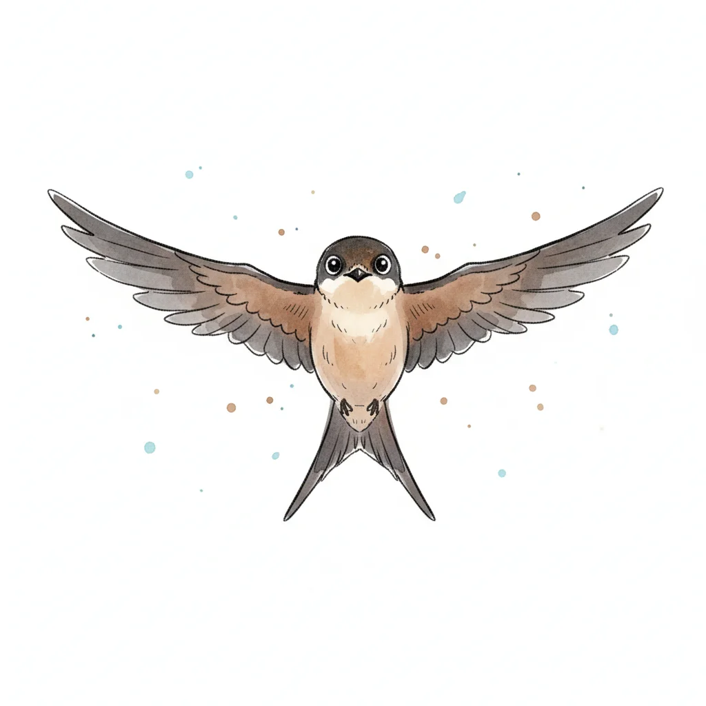 Ein stilisierter Vogel fliegt mit ausgebreiteten Flügeln durch den Himmel.