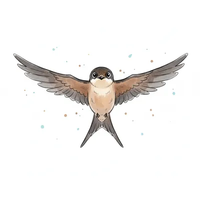 Ein stilisierter Vogel mit ausgebreiteten Flügeln vor einem neutralen Hintergrund.