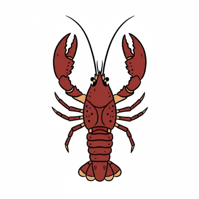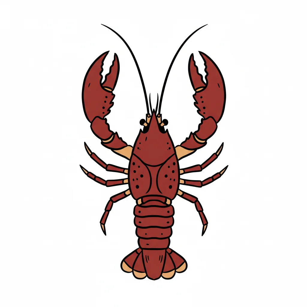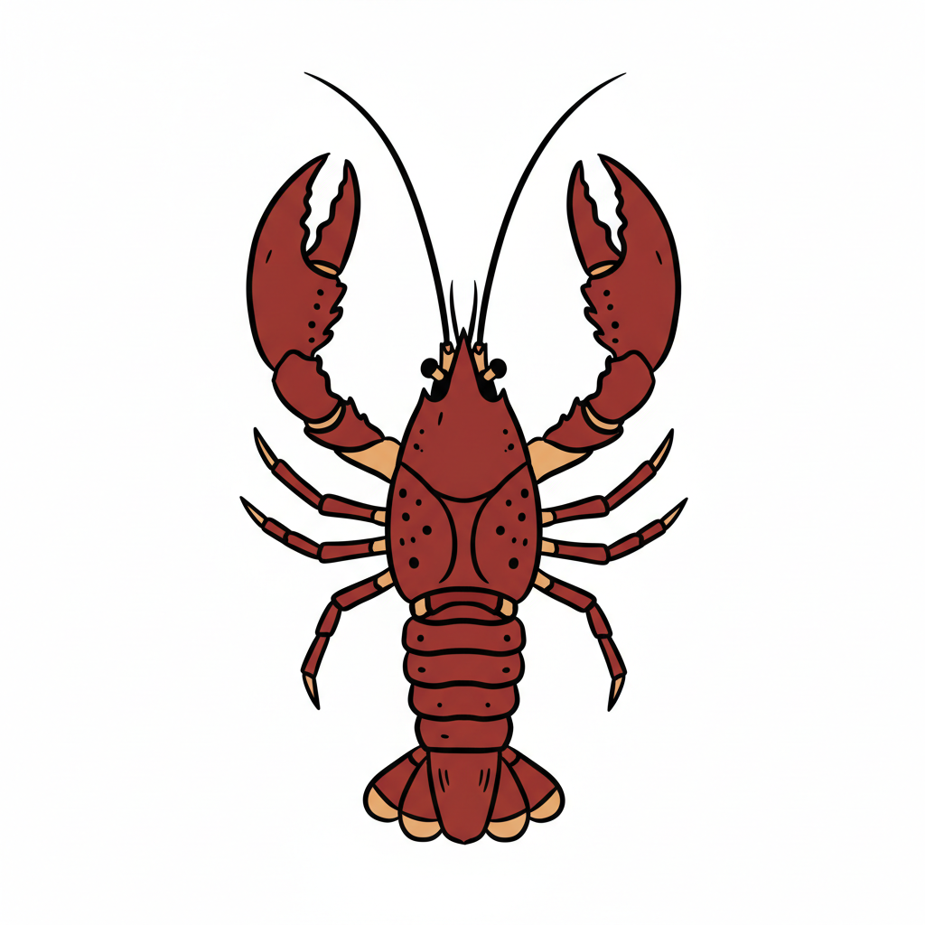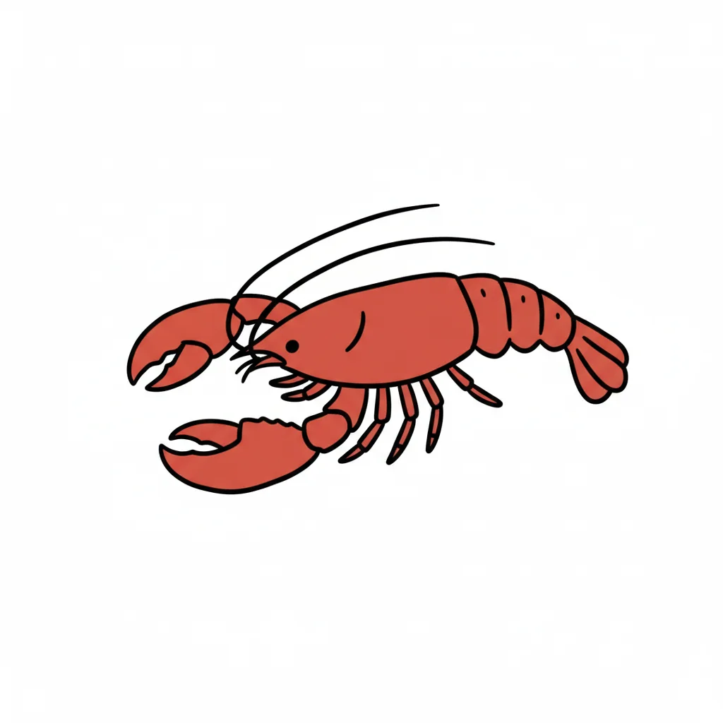 Ein gezeichneter Hummer mit großen Scheren und langen Antennen.