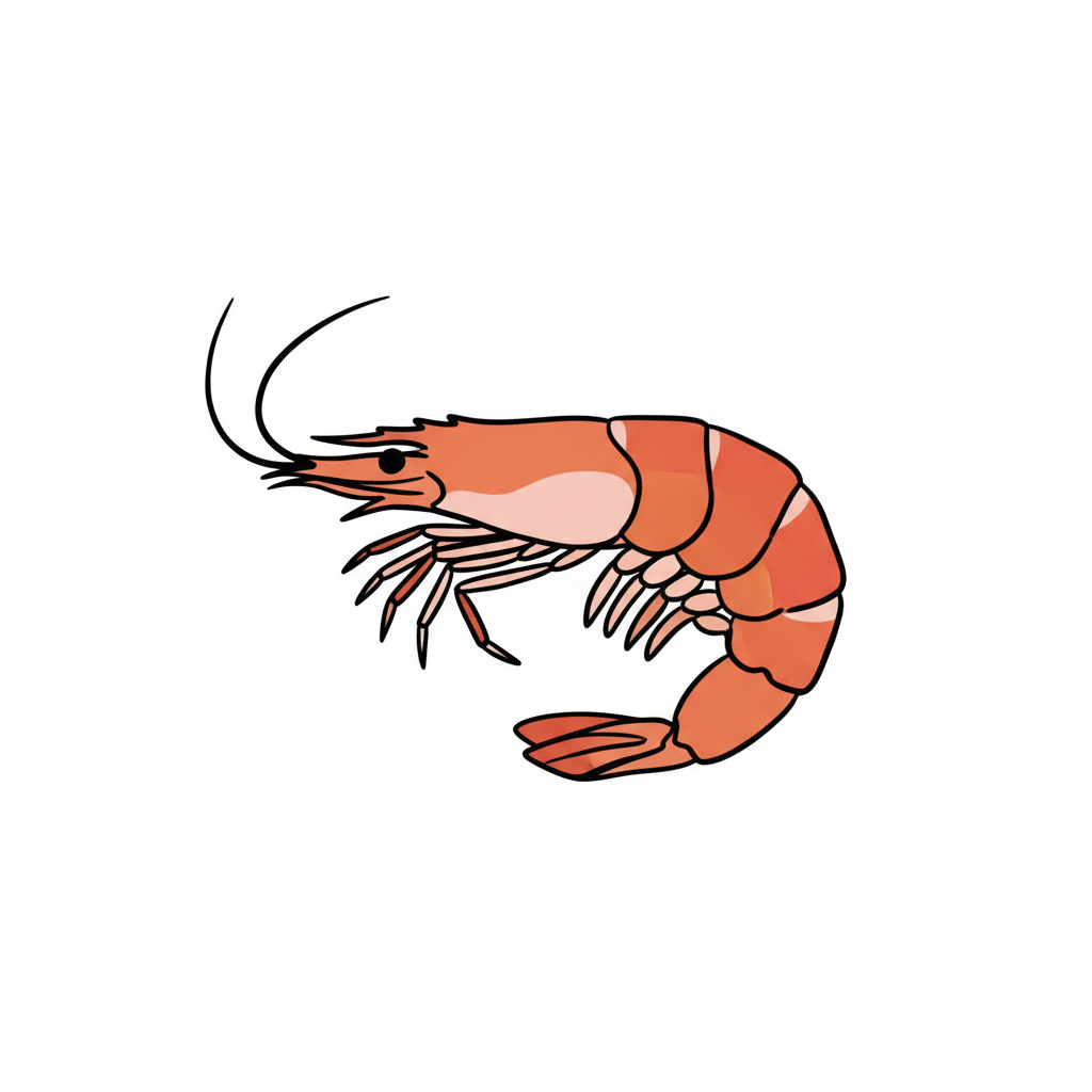 Ein stilisierter, rosa Krebs mit langen Antennen auf weißem Hintergrund.