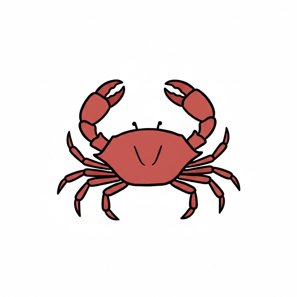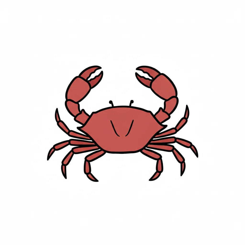 Ein einfach gezeichneter, roter Krebs mit Scheren.