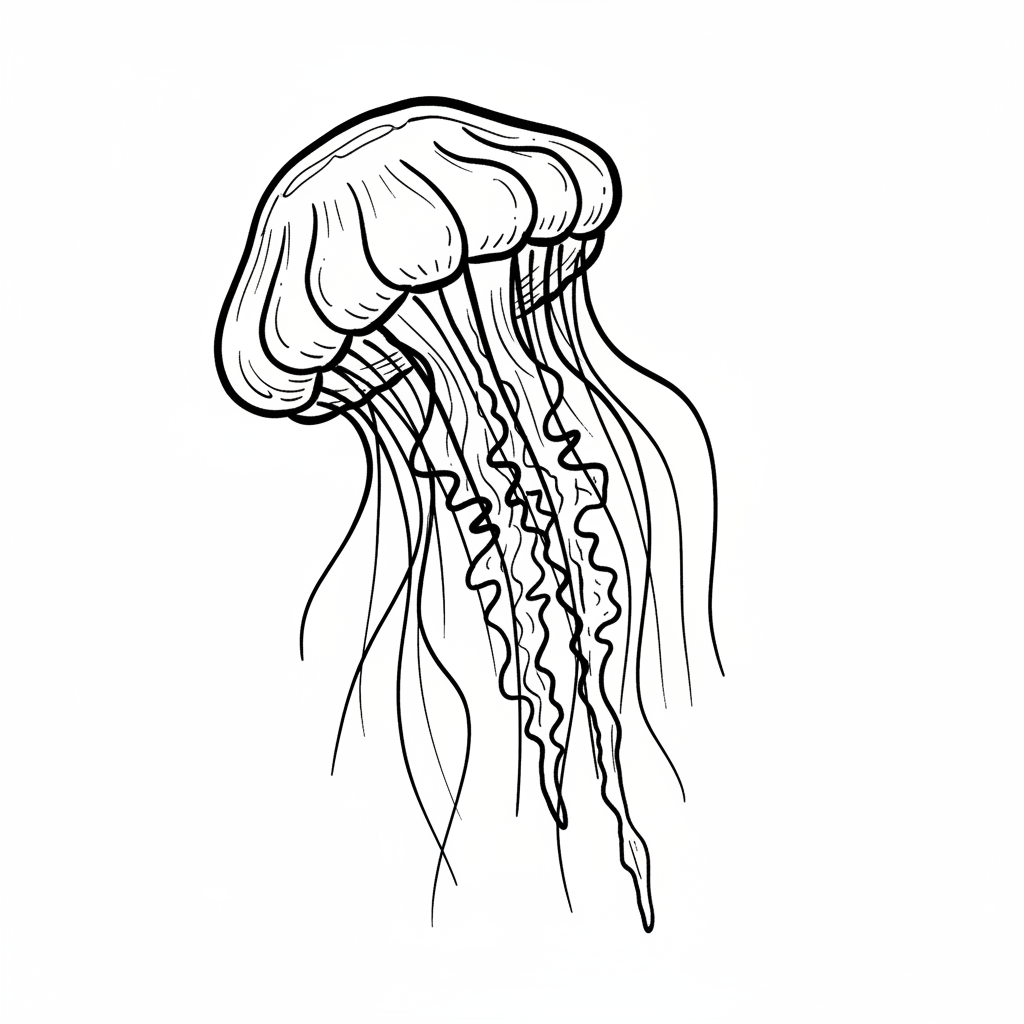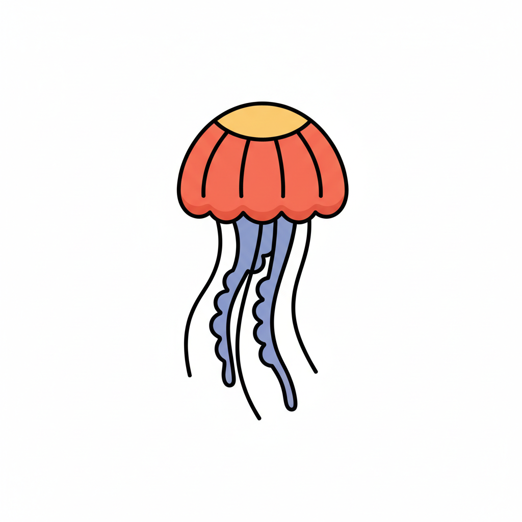 Eine einfache, stilisierte Zeichnung einer Qualle.