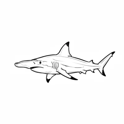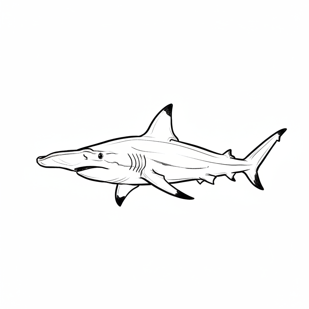 Ein stilisierter Schaufelnose-Hai schwimmt seitlich.