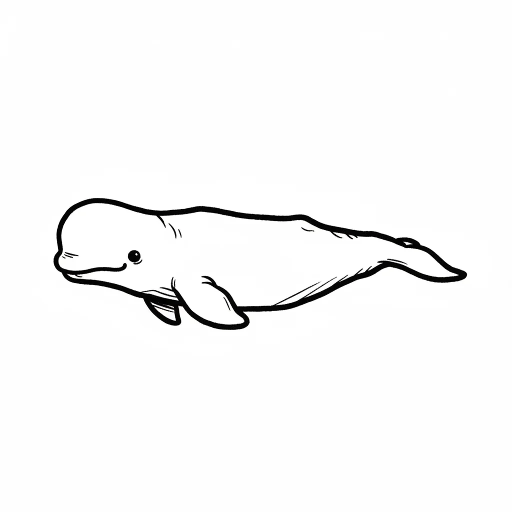 Ein gezeichneter Beluga-Wal schwimmt entspannt im Wasser.