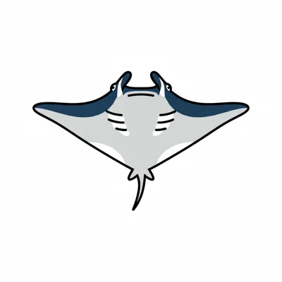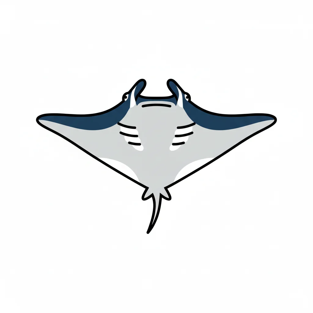 Ein stilisierter, cartoonhafter Rochen mit breiten Flügeln.