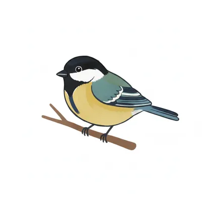 Ein farbenfroher Vogel mit blauem Kopf und gelbem Bauch auf weißem Hintergrund.