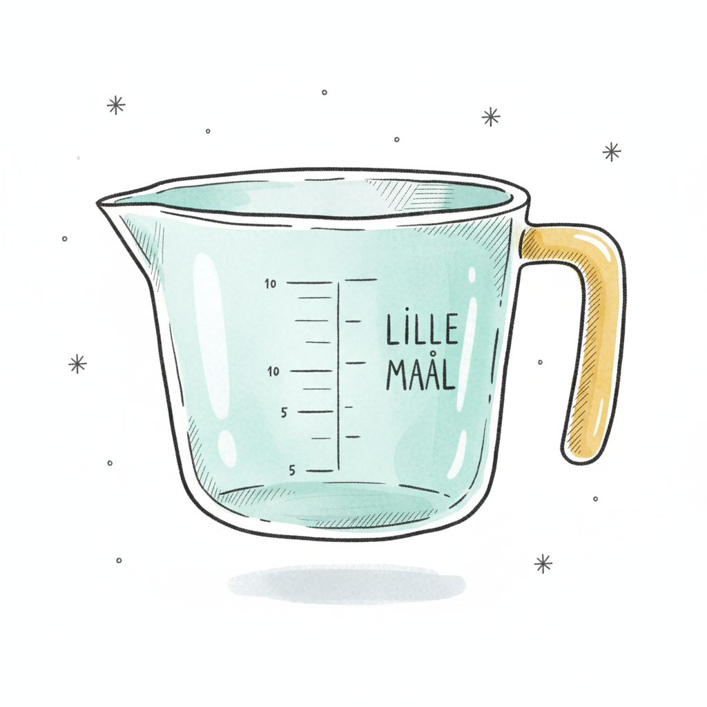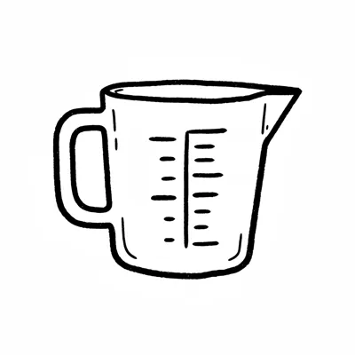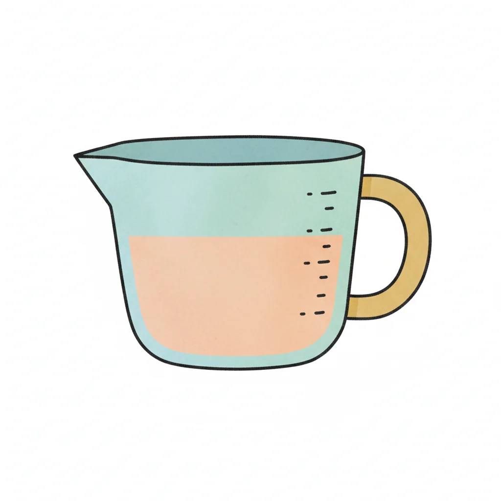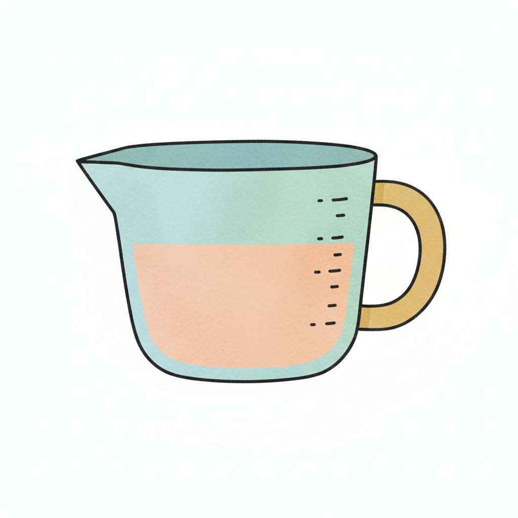 Messbecher mit Flüssigkeit und Maßstrichen.
