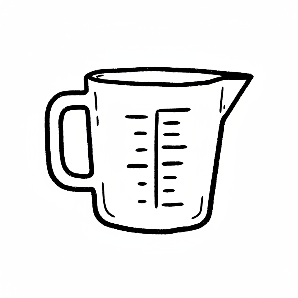 Transparent Messbecher mit einem goldenen Griff und Maßskala.