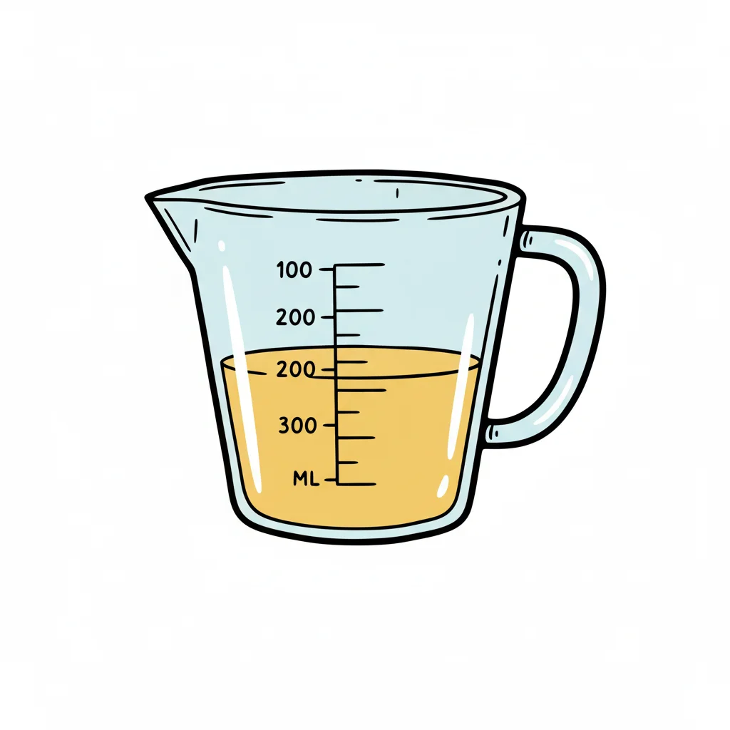 Ein Messbecher mit gelber Flüssigkeit und Messskala.