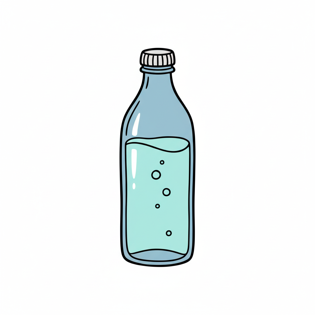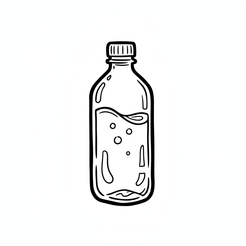 Eine handgezeichnete Flasche mit Wasser und Blasen.