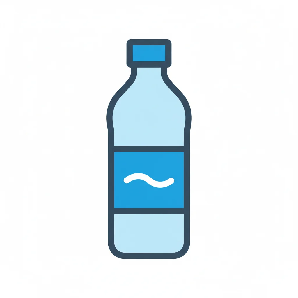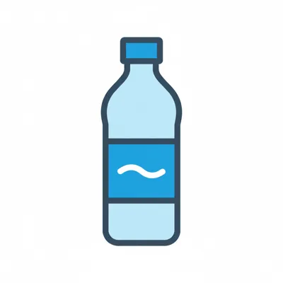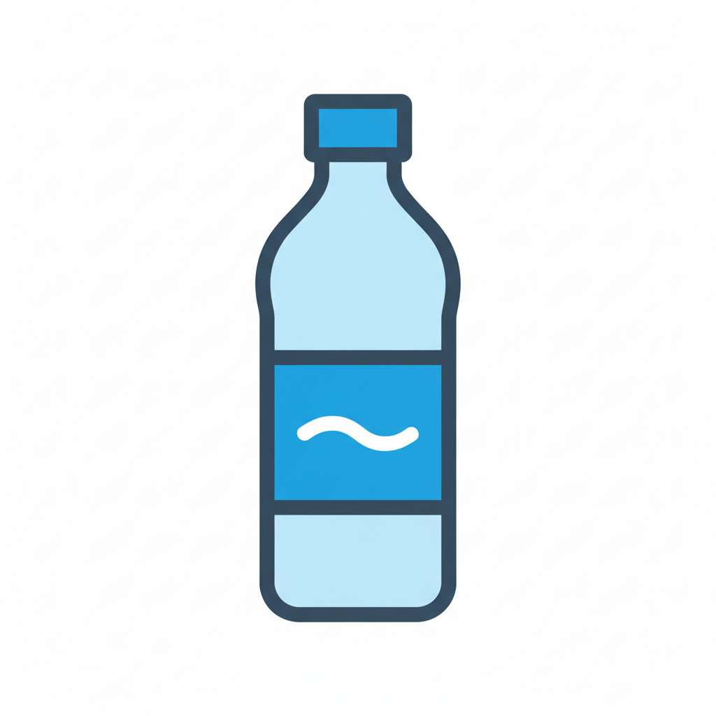 Eine stilisierte Wasserflasche mit blauer Etikettierung.