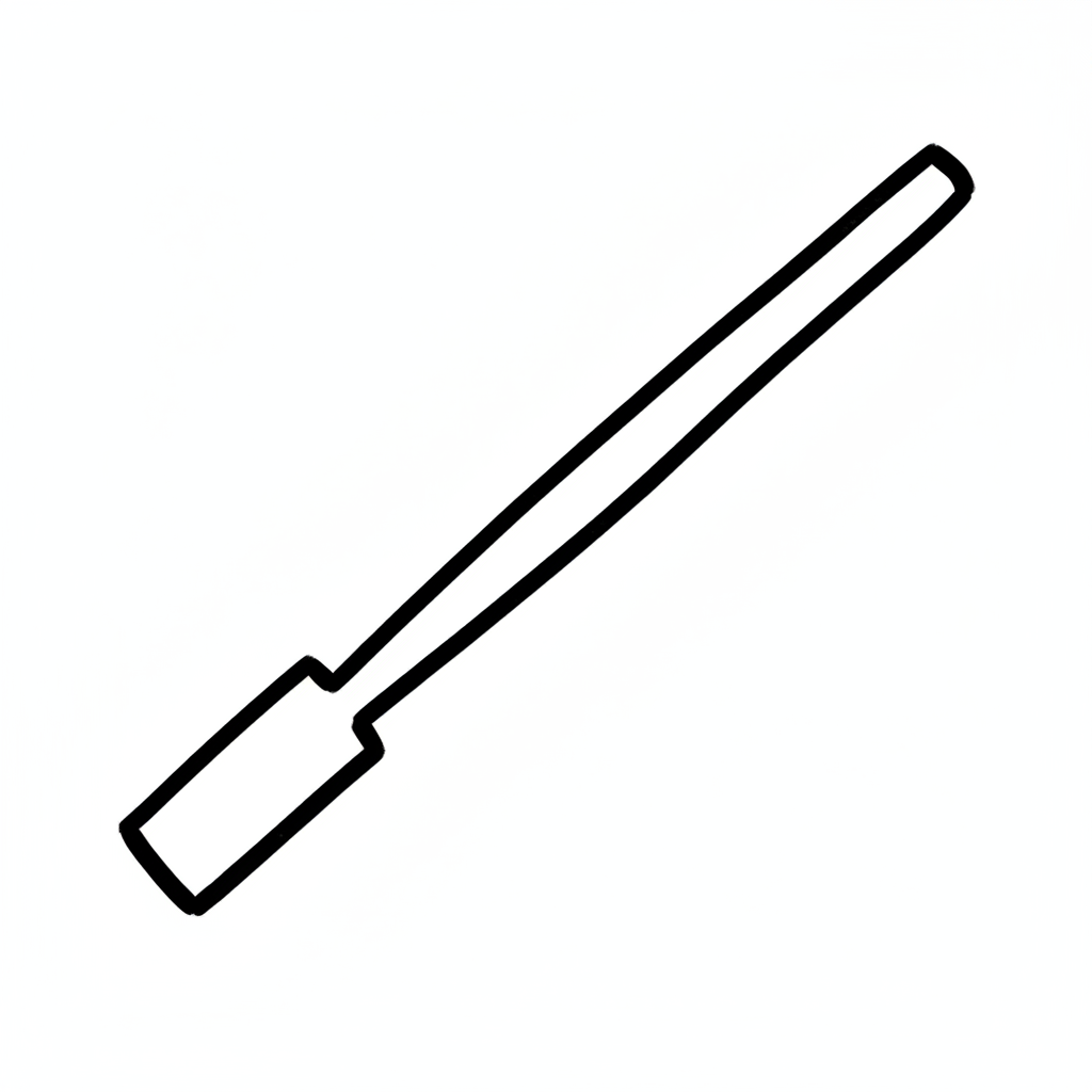 Schwarz-weiße Strichzeichnung eines Rührstabs mit flachem Ende, minimalistisch.