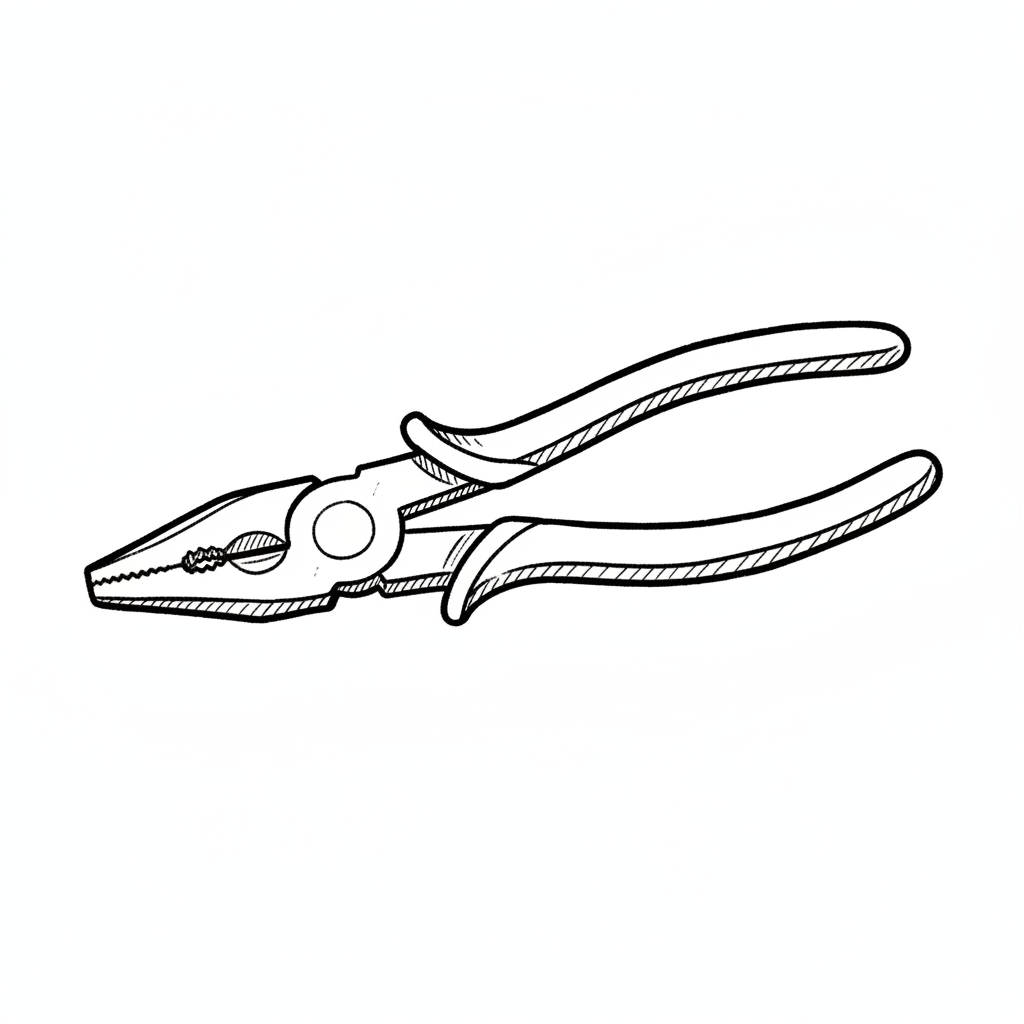 Schwarz-weiße Strichzeichnung einer Zange mit gezackten Backen und ergonomischen Griffen.