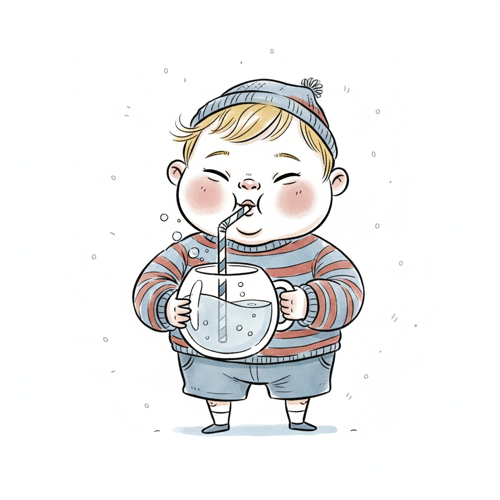 Ein Kind trinkt aus einem Becher mit einem Strohhalm.