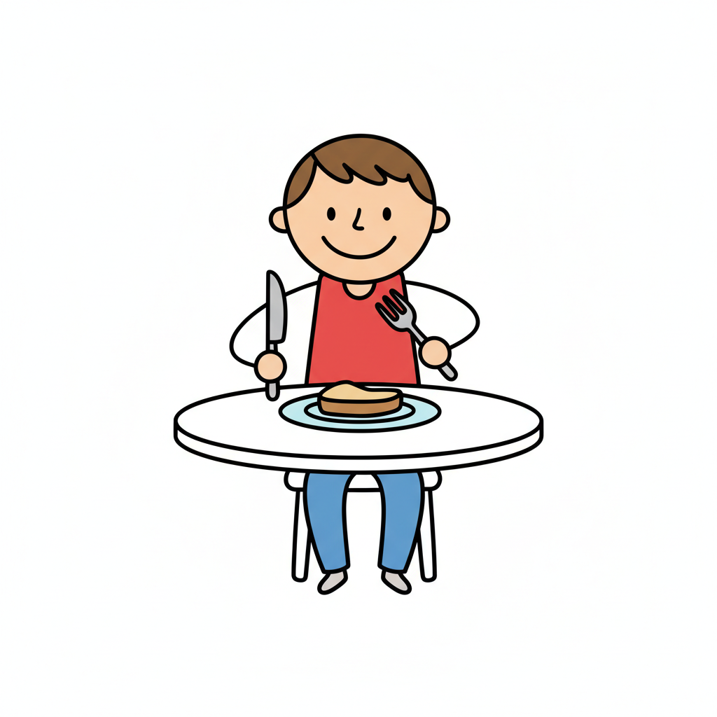 Ein Junge sitzt am Tisch und bereitet sich vor, sein Essen zu genießen.