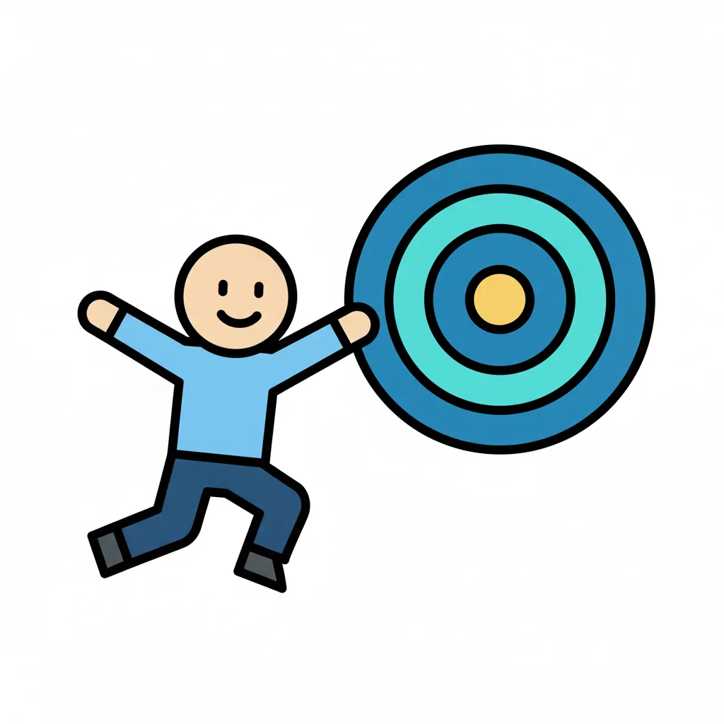 Eine lächelnde Cartoonfigur springt auf ein Ziel zu, symbolisiert Motivation und Erfolg.