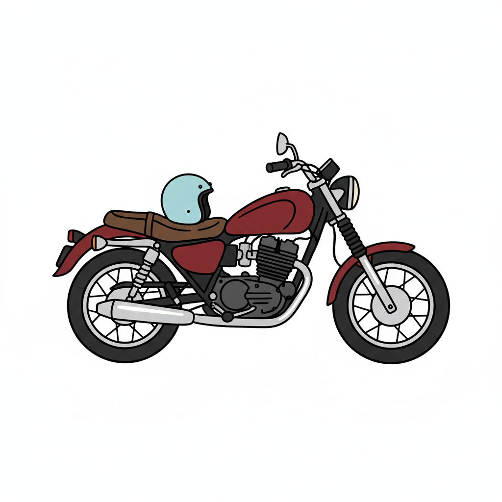 Ein stilisiertes Bild eines blauen Motorrads mit rotem Sitz.