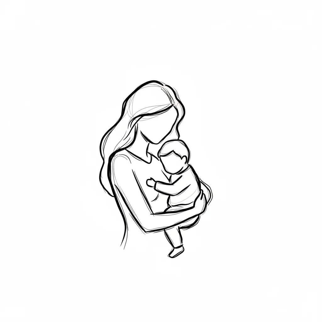 Eine stilisierte Darstellung einer Mutter mit einem Baby auf dem Arm.