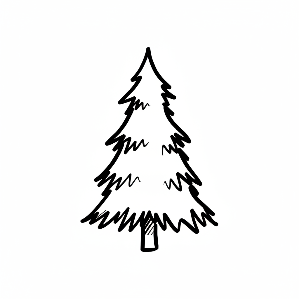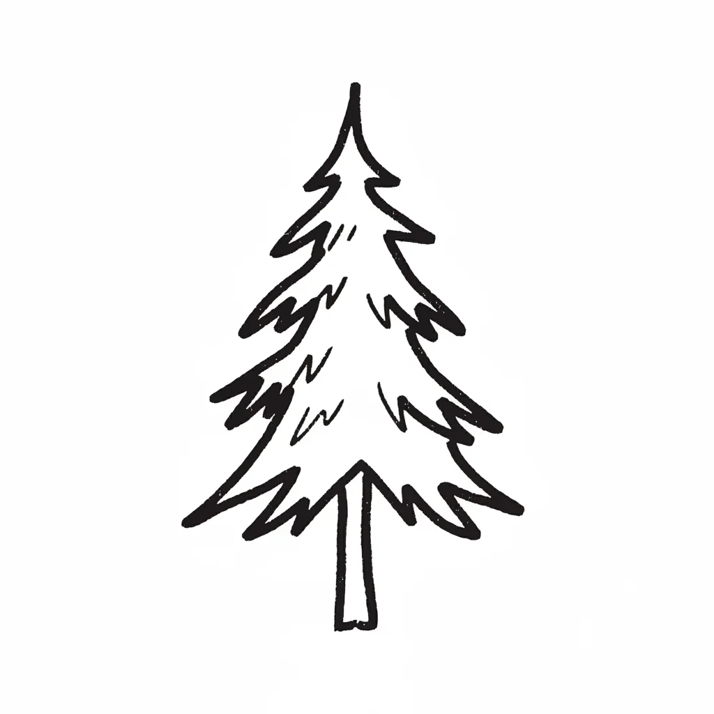 Einfache, handgezeichnete Skizze eines Nadelbaums in Schwarz-Weiß auf weißem Hintergrund.