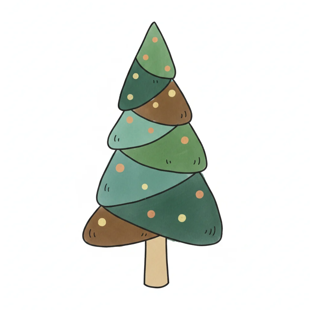 Stilisierter Weihnachtsbaum in Grüntönen mit kleinen Lichtern auf weißem Hintergrund.