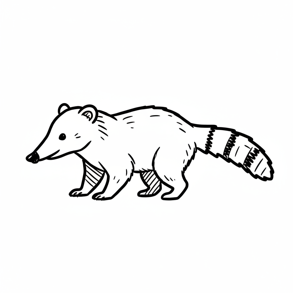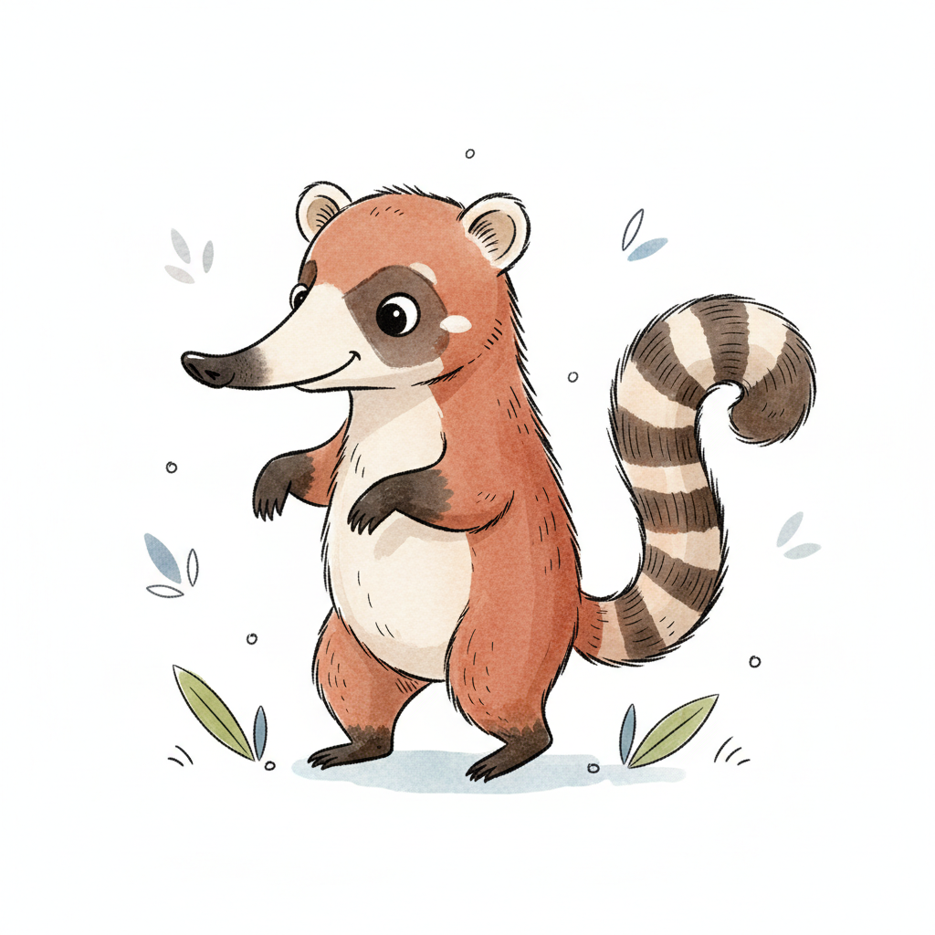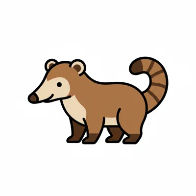 Illustration eines Nasenbären mit braunem Fell und gestreiftem Schwanz.