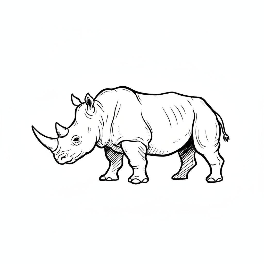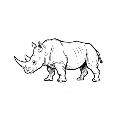 Zeichnung eines Nashorns in seitlicher Ansicht.