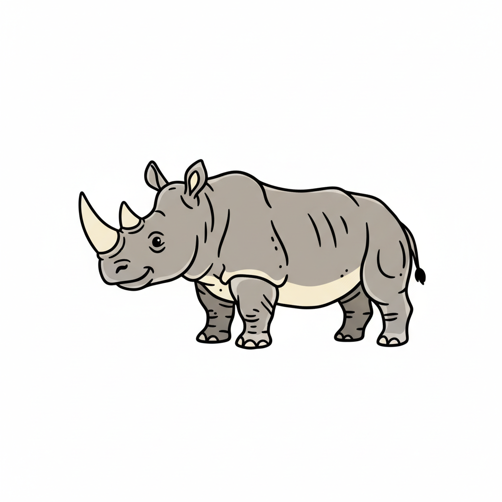 Eine niedliche, cartoonartige Darstellung eines Nashorns.