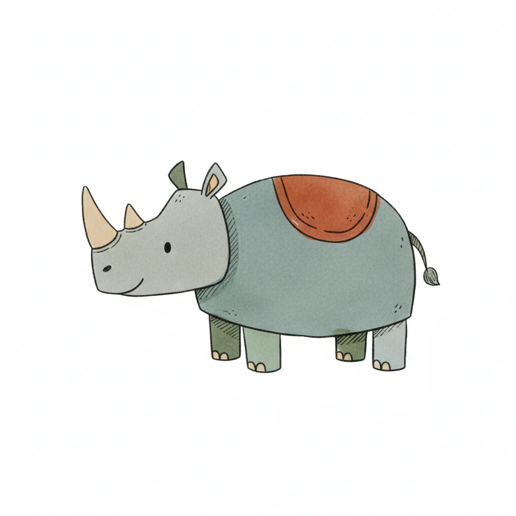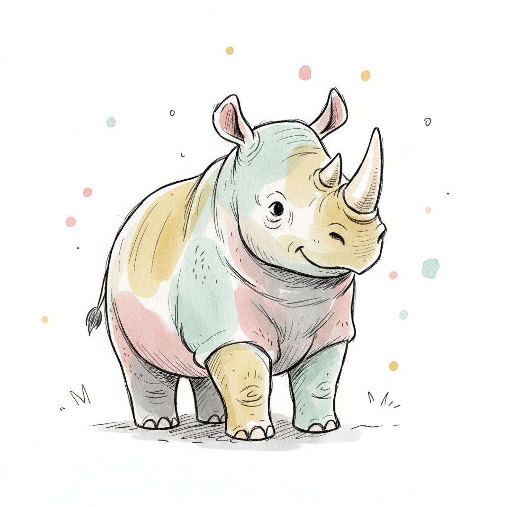 Ein niedliches, cartoonhaftes Nashorn mit bunten Akzenten.