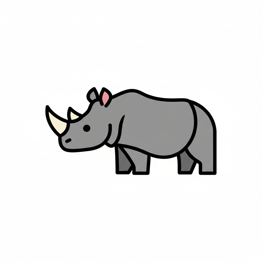 Ein niedliches, cartoonhaftes Nashorn mit zwei Hörnern.