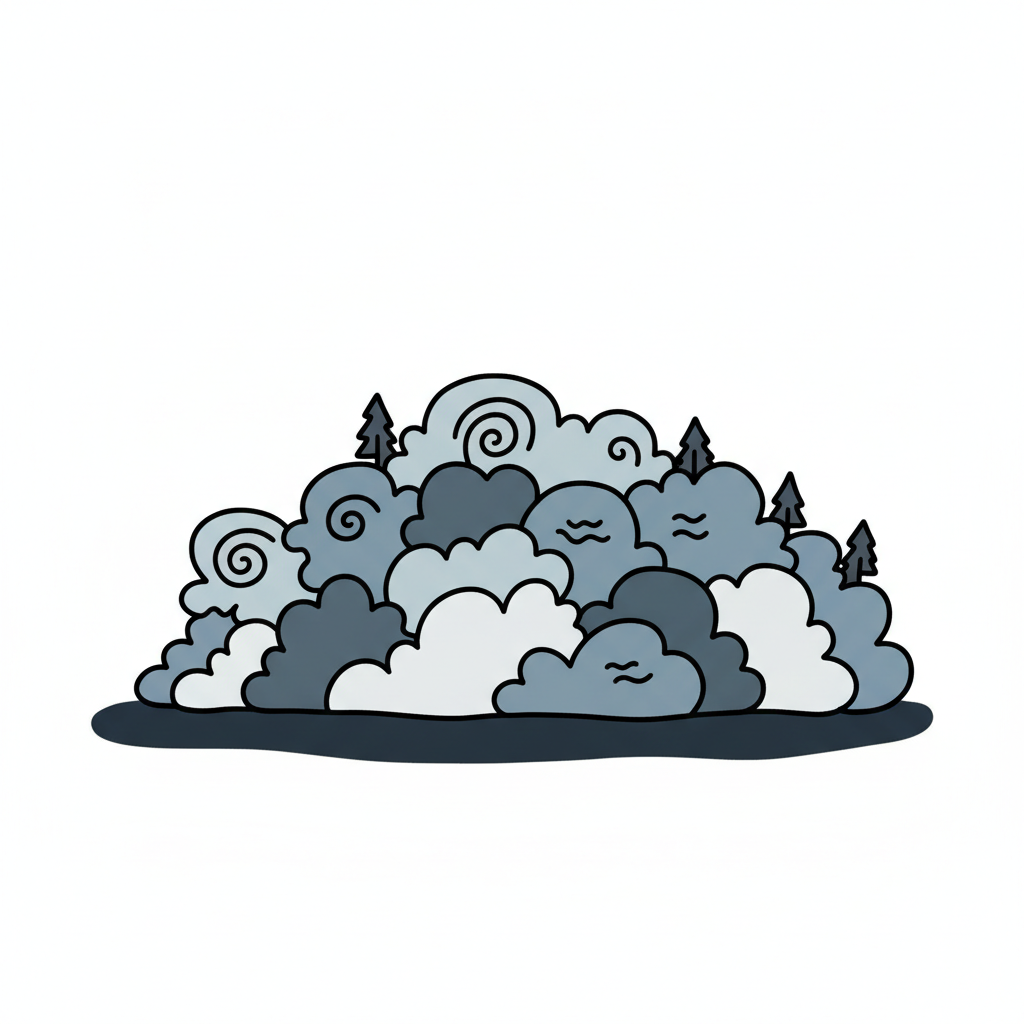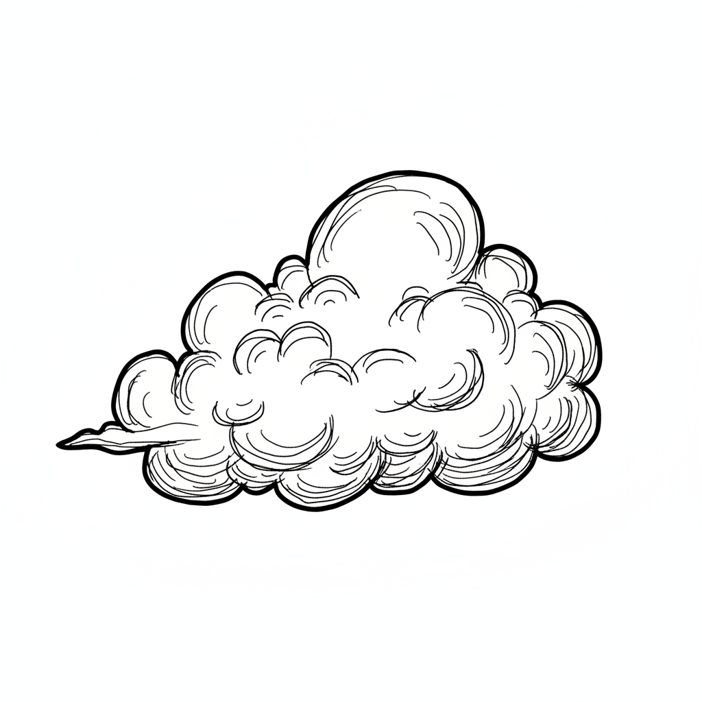 Eine skizzierte Wolke mit voluminösen, geschwungenen Formen.