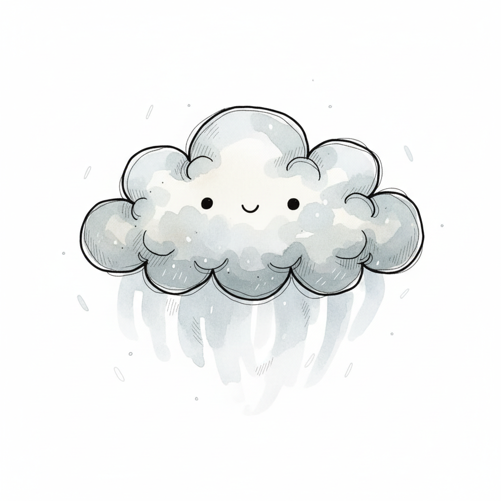Eine fröhliche, cartoonartige Wolke mit lächelndem Gesicht.