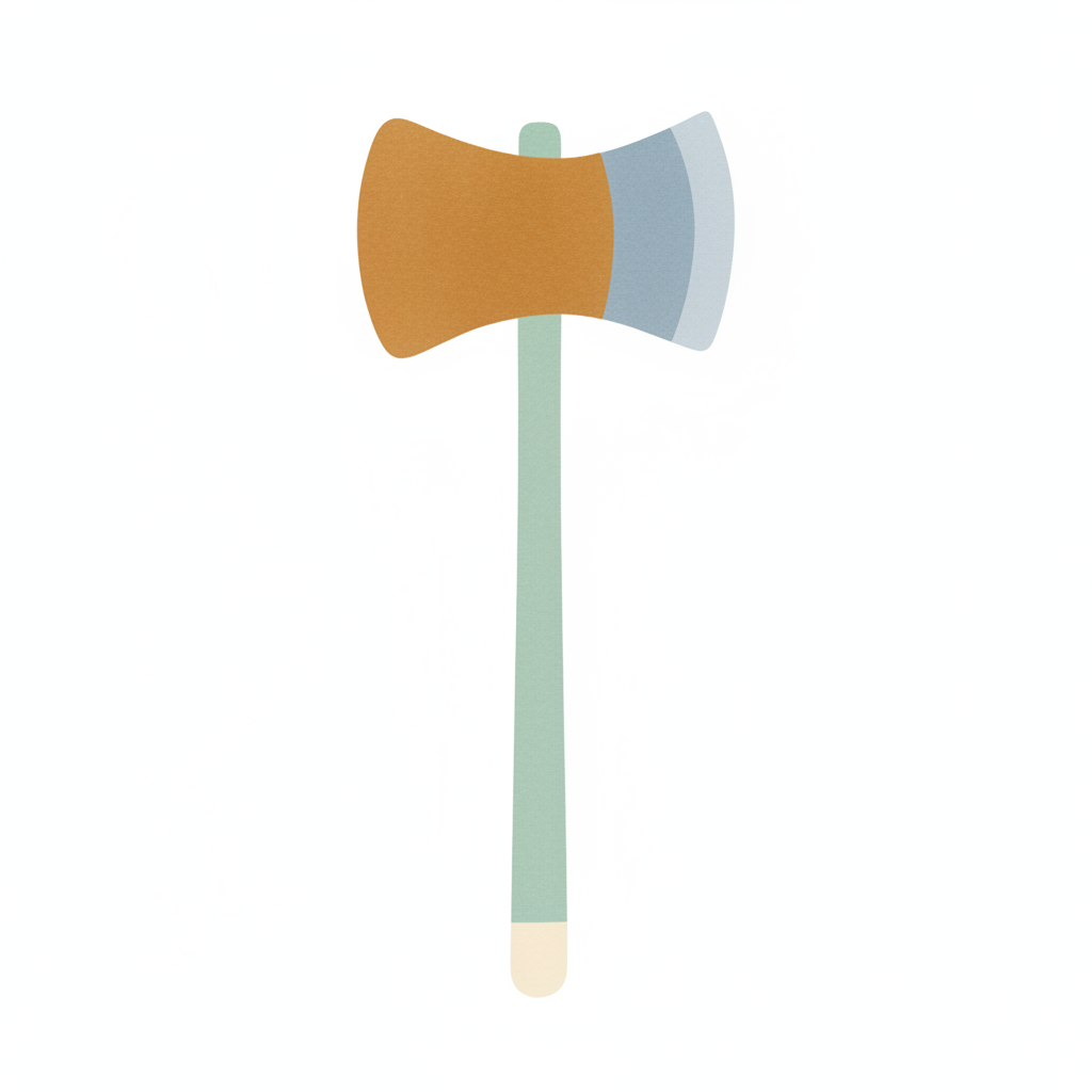 Stilisierte, zweischneidige Axt in Pastellfarben auf weißem Hintergrund.
