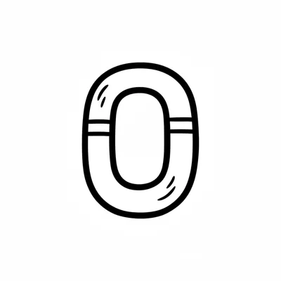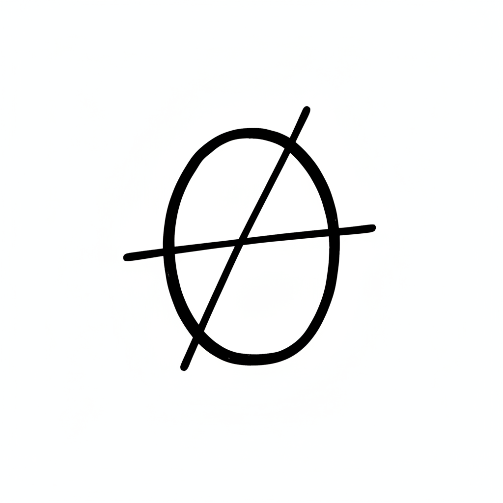 Handgezeichnete, stilisierte Zahl Null oder Buchstabe O mit zwei horizontalen Linien.