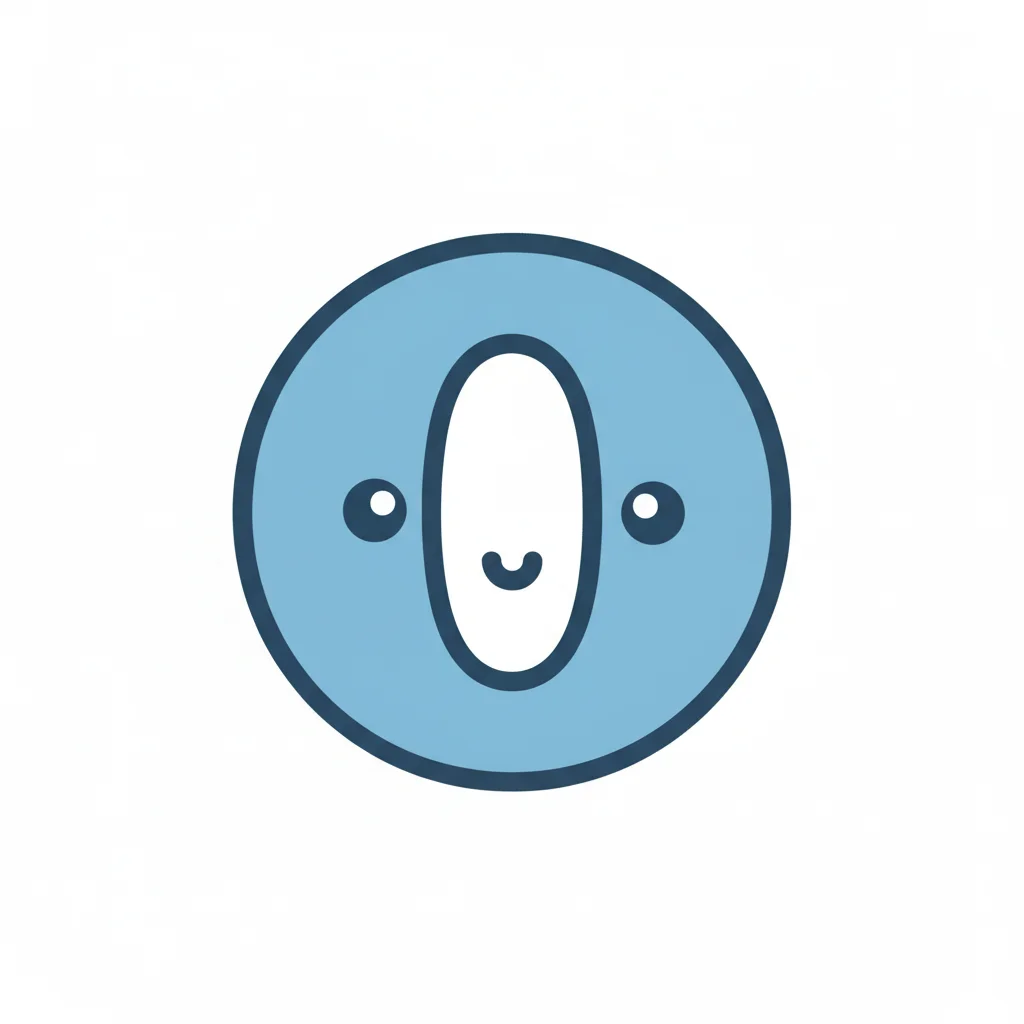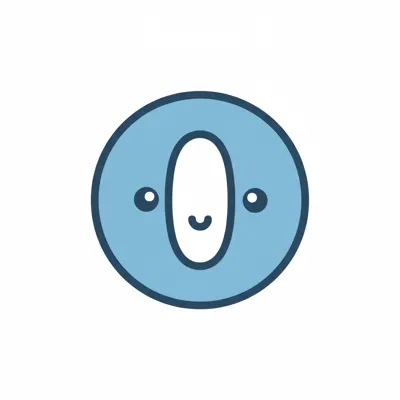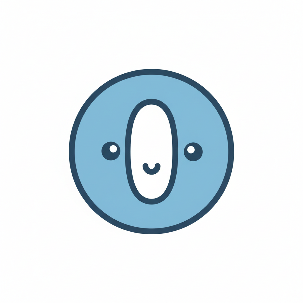 Niedliches, lächelndes blaues O-förmiges Cartoon-Gesicht auf weißem Hintergrund.