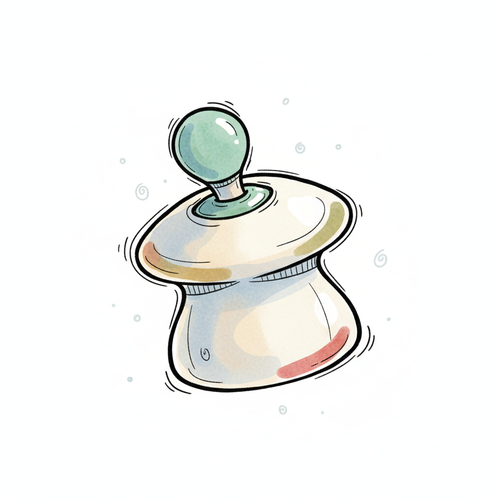 Für ältere Kinder illustrierter Gegenstand als einzelner, zentrierter Gegenstand vor weißem Hintergrund, im frech-nordischen Aquarell-Skizzenstil. Klare, leicht wackelige Tuschekonturen, sichtbare Pinsel- und Strichtextur, dezente Schraffuren, weiche handgemalte Farbflächen in gedeckten Farben. Runde, einfache Formen. Keine harten Schatten, sondern sanfte, transparente Aquarellschichten. Leicht raue, handgezeichnete Linien statt glatter Vektorkanten. Subtile, vereinzelte Kritzelpunkte oder kleine Details im Hintergrund, aber keine echte Szene. Gegenstand steht oder schwebt mittig. Insgesamt charmant, humorvoll, warm und handgemacht wirkend, wie eine moderne Illustration auf weißem Hintergrund. Gegenstände sollen keine Gesichter haben.