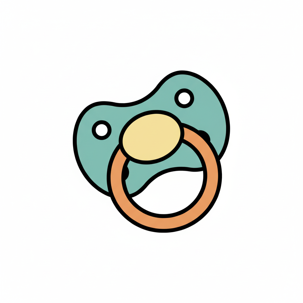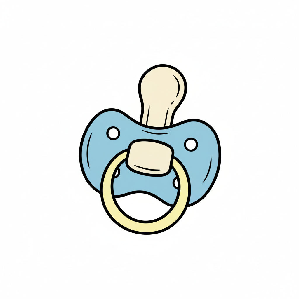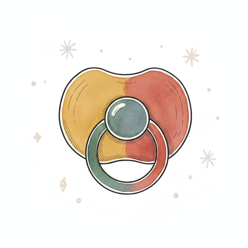 Illustration eines Baby-Schnullers in Hellblau, Gelb und Orange auf weißem Hintergrund.