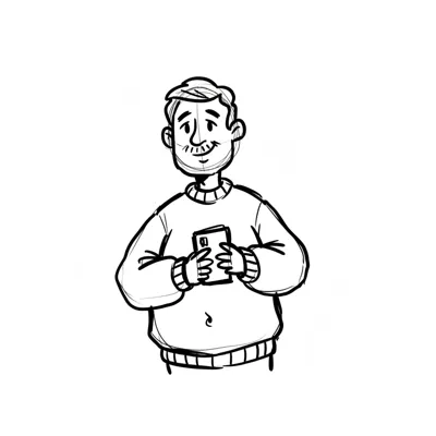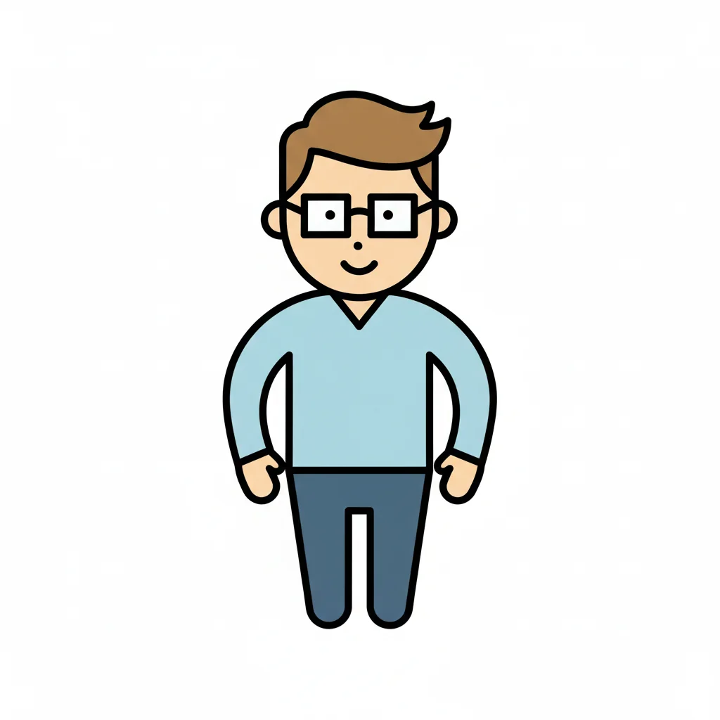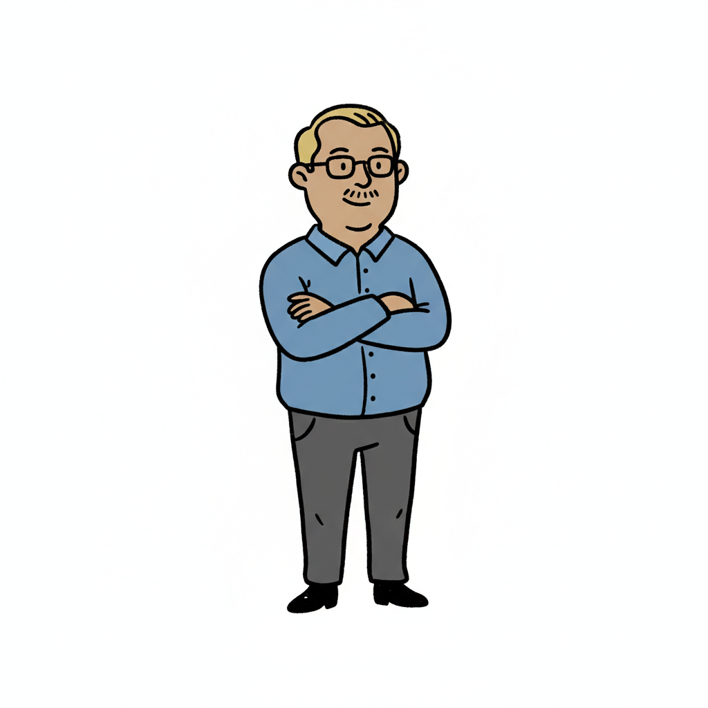 Eine cartoonartige Darstellung eines lächelnden Mannes in Brille.