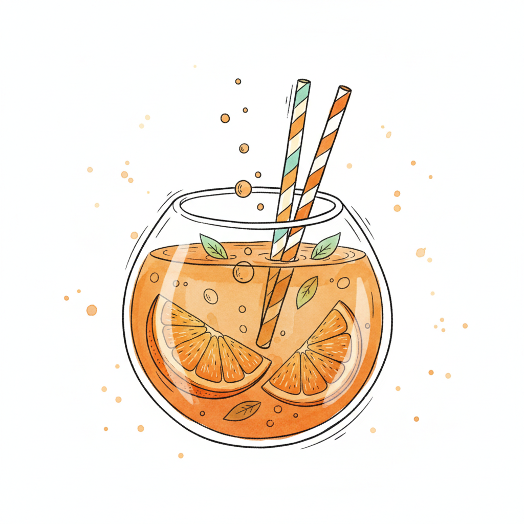 Ein erfrischendes Getränk mit Orangenscheiben und bunten Strohhalmen.
