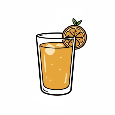 Ein Glas mit orangefarbenem Getränk und einer Orangenscheibe.