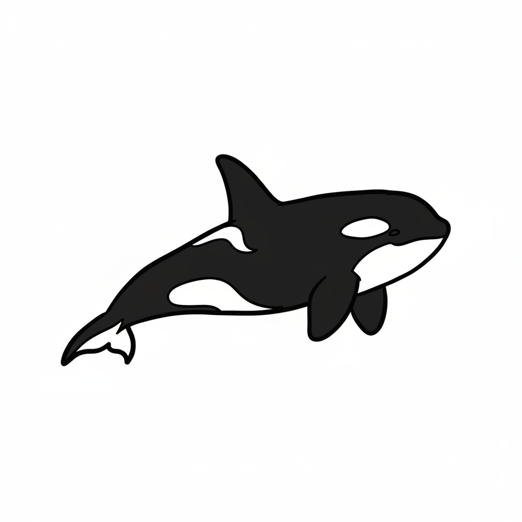 Stilisierte Darstellung eines Orcas auf weißem Hintergrund.