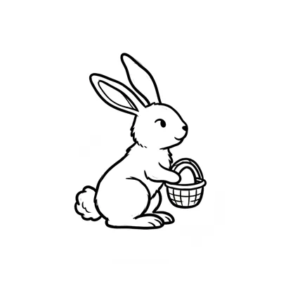 Ein niedlicher Kaninchen hält einen kleinen Korb.